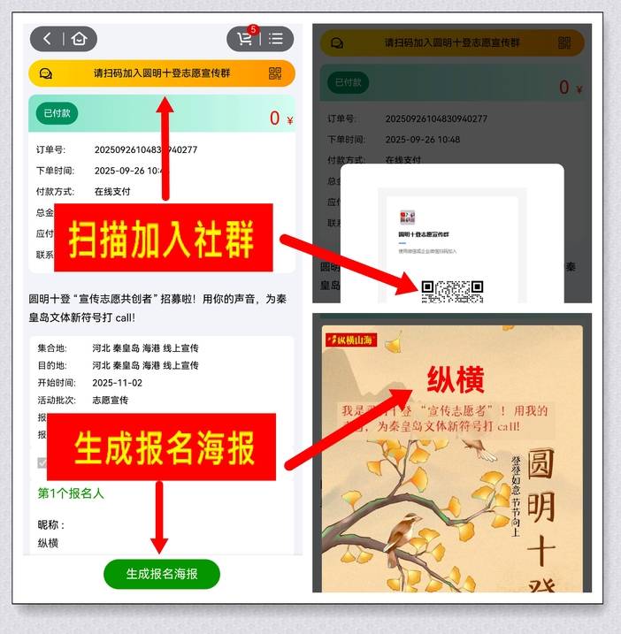 扫码纵横山海官网报名「圆明十登宣传共创者」(报名二维码见文末 ),成功后自动跳转活动详情页,生成带你昵称的专属宣传海报(这是你的「共创身份牌」,发圈超有排面 )!