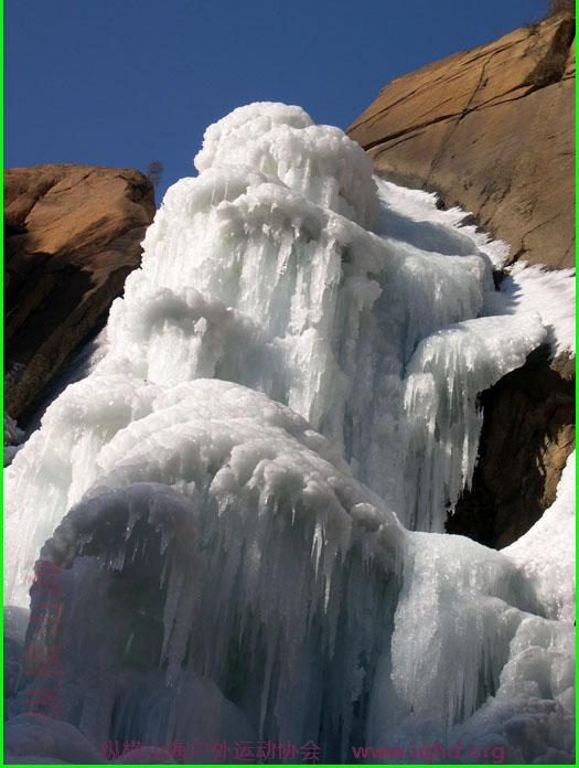 凝固的精灵-银色的世界-秦皇岛市冰瀑布寻踪秦皇岛山地占陆地面积的3/5, 可用“雄奇秀丽”四字概括。同时水系丰富,仅独立入海的河流就有12条之多。比较大的有:石河、沙河、汤河、戴河、洋河、饮马河。其中在石河、洋河源头的丛山峻岭中,孕育了我市五大著名瀑布。他们是同属石河水系的祖山风景区南龙潭瀑布、北龙潭瀑布;以及板场峪风景区的九道缸瀑布。洋河水系有祖山风景区的花果山瀑布;龙潭峡风景区的龙潭峡瀑布。 冬季,白雪飘飞,气候严寒,在落差达数十米的悬崖下跌落下来的这些瀑布,凝结成冰,就形成了一道特殊的景观:冰瀑布。看过南方瀑布的人们,或许对北方的瀑布不以为然,但是冰瀑布却是北方所特有的一道奇异的景观。从