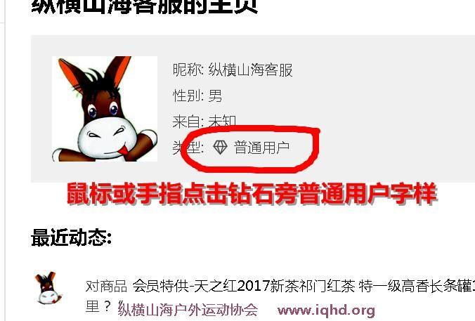 4、自己头像下面点击或者指向钻石旁的普通用户。