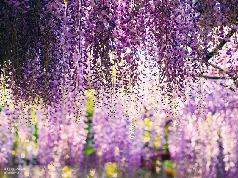 4月,就该接着观紫藤了,期待那如瀑布般飞流而下的紫色花序!