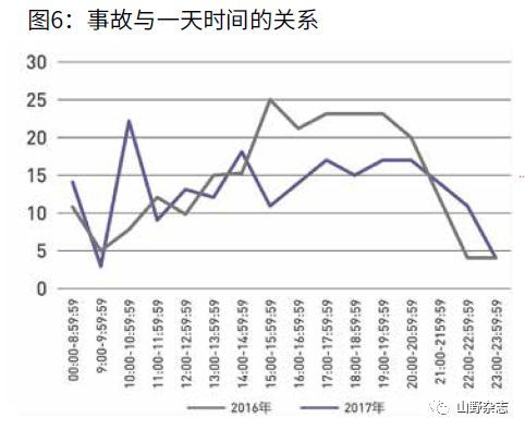 另外,2017 年上午10:00—11:00 期间,较之去年,事故增长幅度较大。