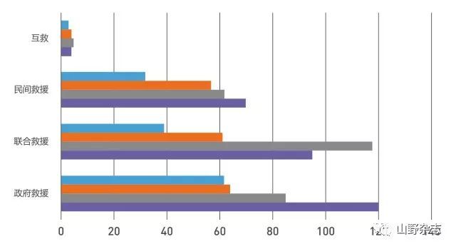 数据显示,在2017 年的山地救援案例中,联合救援仅次于政府救援,它可以弥补政府救援和民间救援单独开展时所带来的困难。