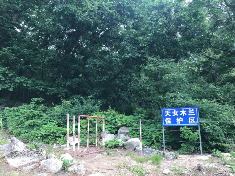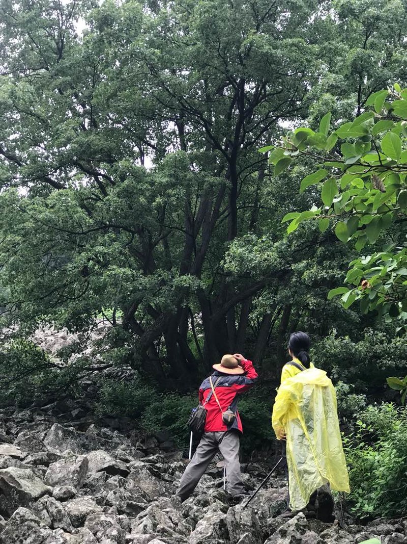 有惊无险走出原始森林,雨渐渐停了。时间还早,刚11点多,看到路边铁丝网圈起来不让进的天女木兰保护区林木葱郁,安静幽深,没过够爬山瘾的我蠢蠢欲动,想进园子里看看。没想到提议竟有人响应,福地林海大哥还轻松打开了园门,本做好了翻栏杆进去的打算,连这步都省了,更要好好进去玩玩了。