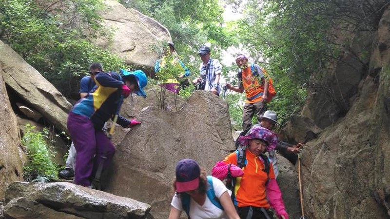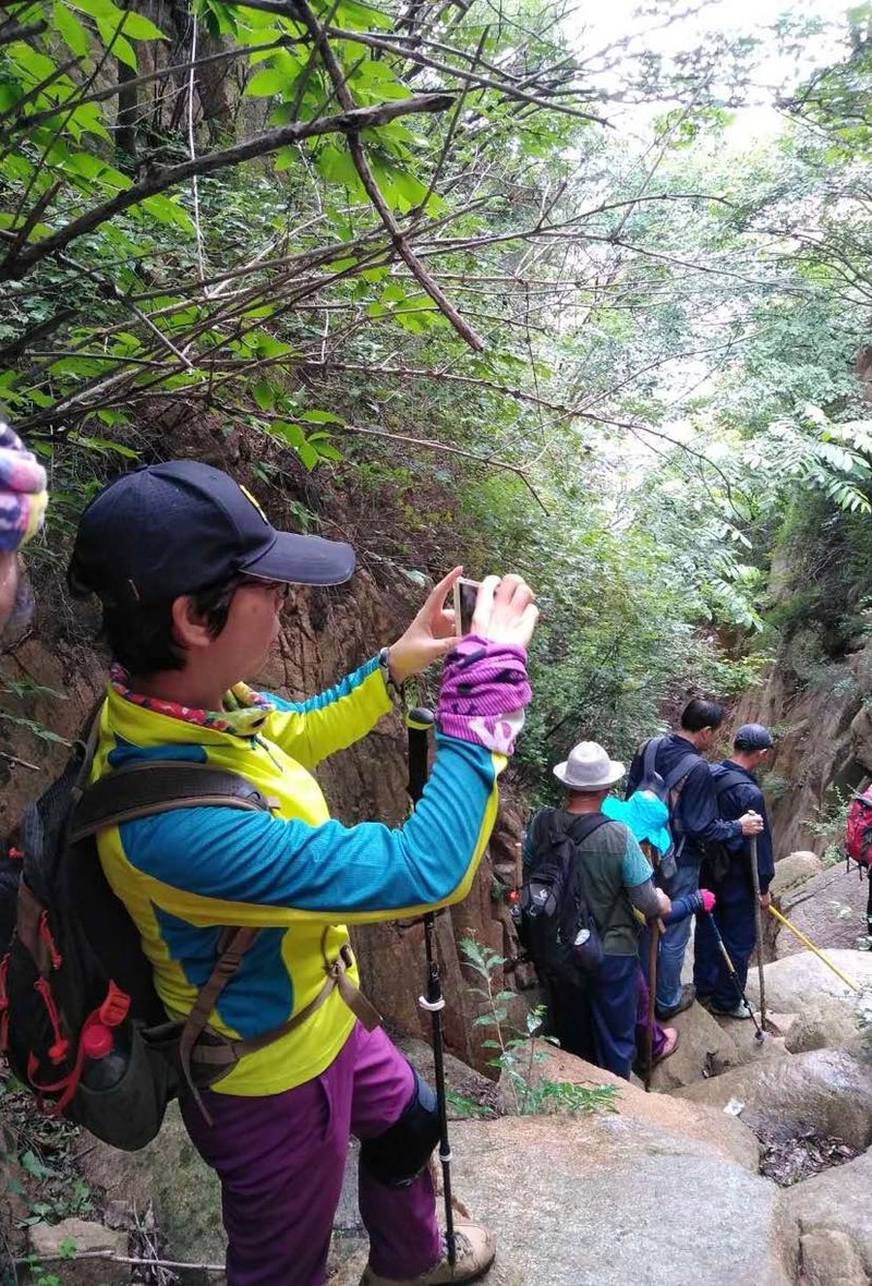 上次柳观峪跟朋友户外第一次活动后,喜欢上这个户外团队的氛围,亲如一家。大家互相拍照,录视频,发在群里,由群里摄影发烧友明珠大哥制作成半小时的小影片,爬山回来后还能热闹好几天,边看视频边反复回味美景,友情,增进队友间的交流和友谊。这不,每遇到沟沟坎坎领队禾子姐都提醒大家注意脚下,互相拉一把,拽一下,格外团结友爱。由于发照片发视频很快素不相识的队友就能互相叫上名来了。我第二次跟他们活动,也已经是这个大家庭的一员了,感到亲切,温暖。