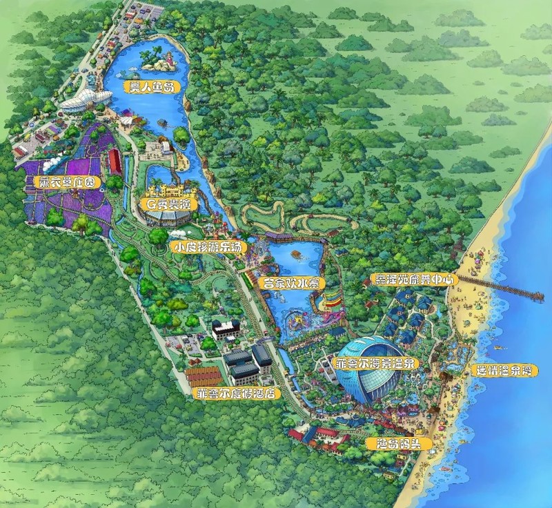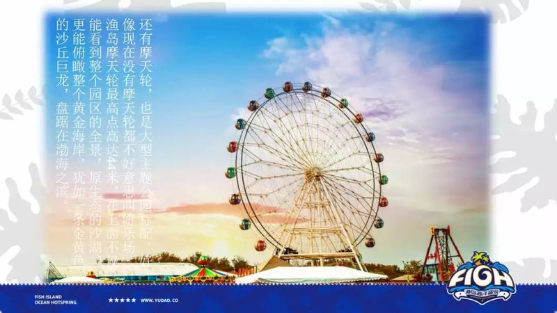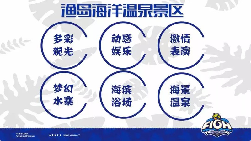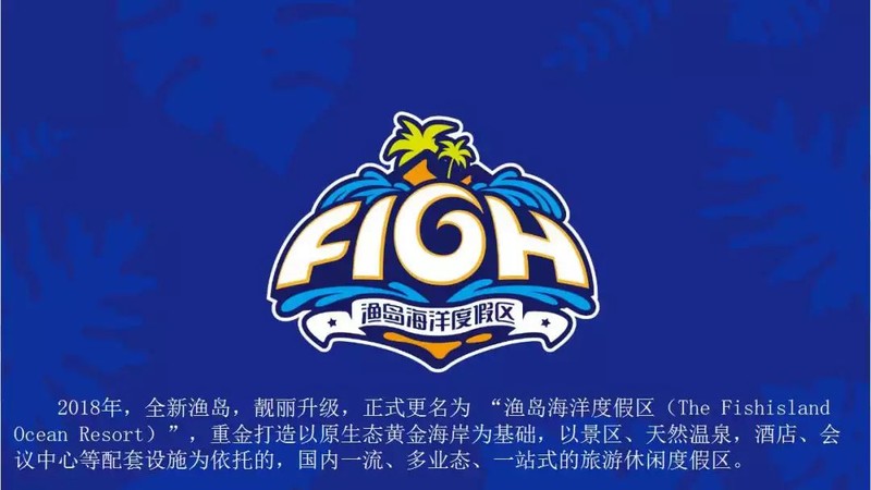2018年,全新渔岛,靓丽升级,正式更名为 “渔岛海洋度假区(The Fishisland Ocean Resort)”,重金打造以原生态黄金海岸为基础,以景区、天然温泉,酒店、会议中心等配套设施为依托的,国内一流、多业态、一站式的旅游休闲度假区。