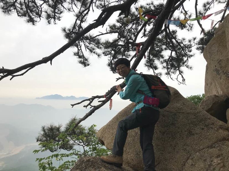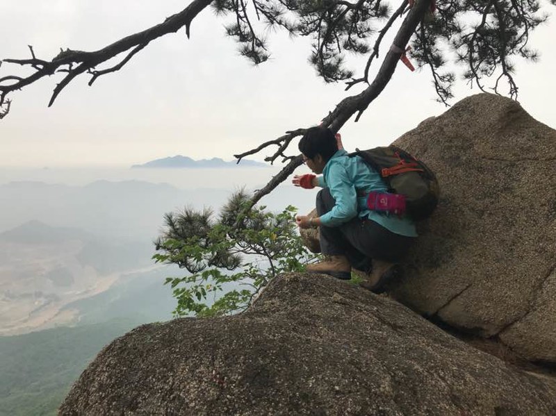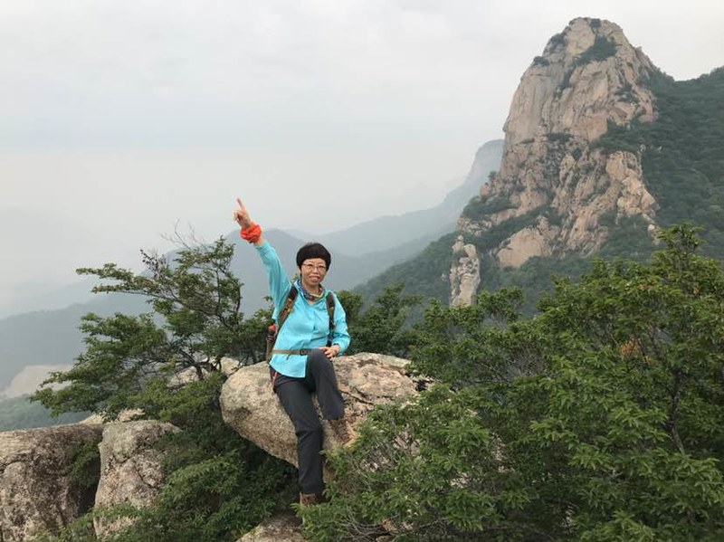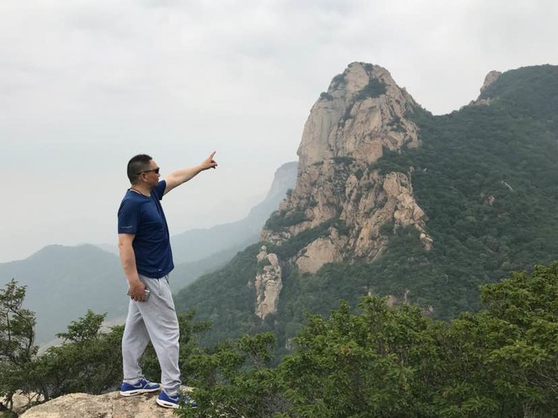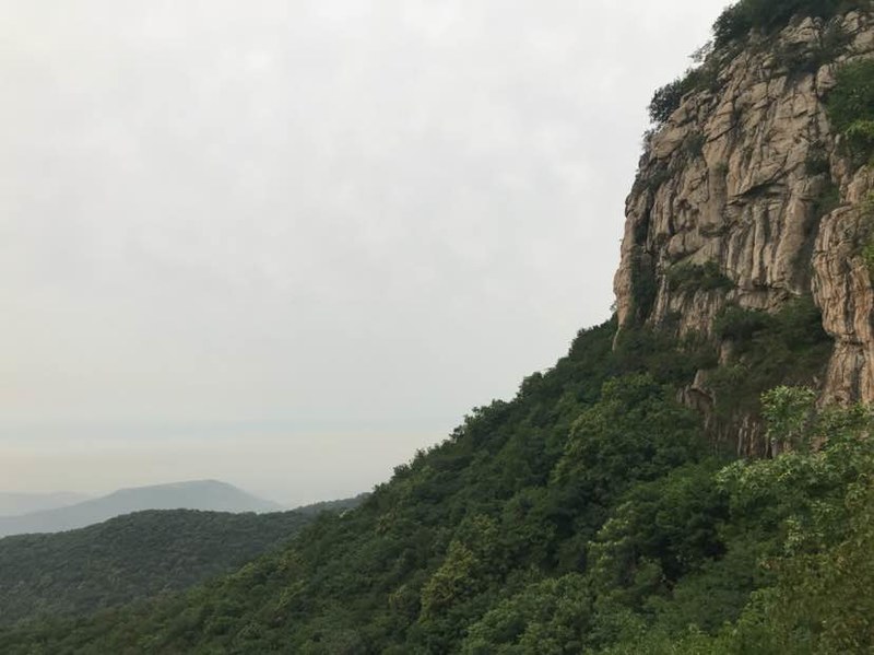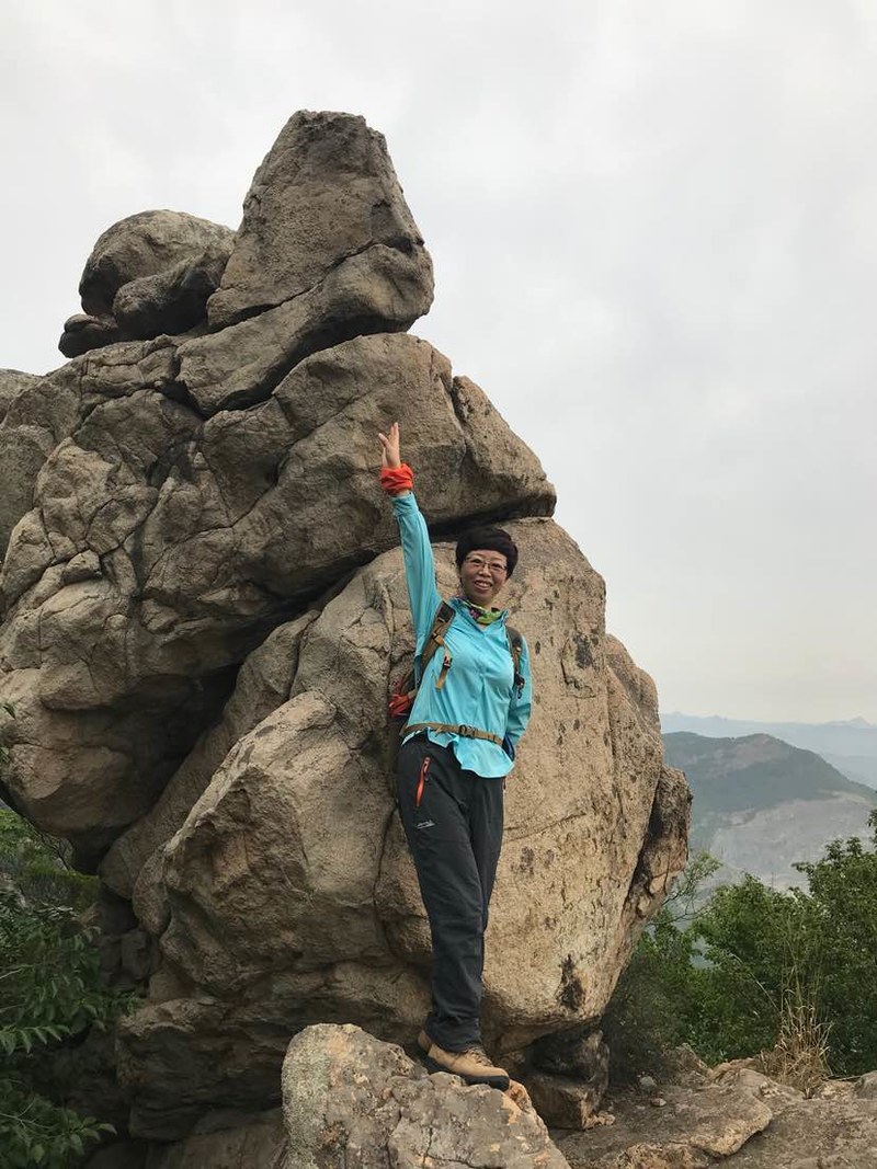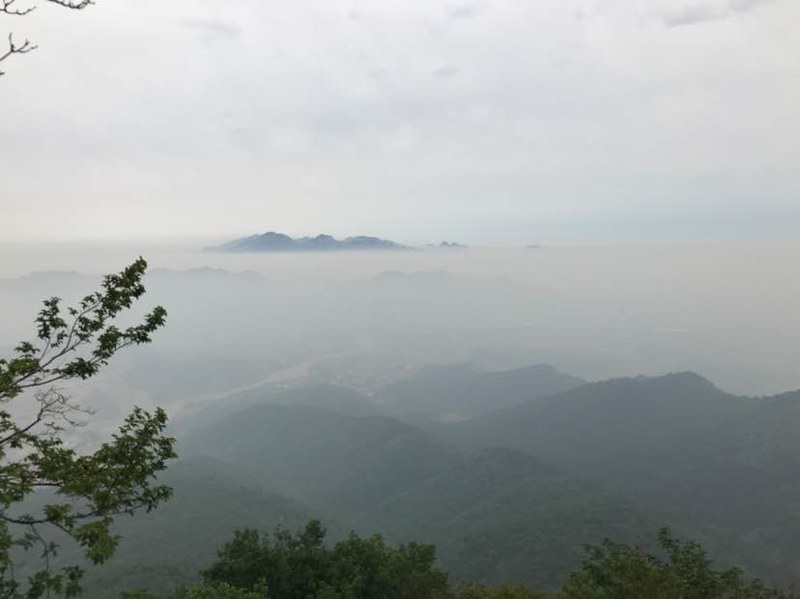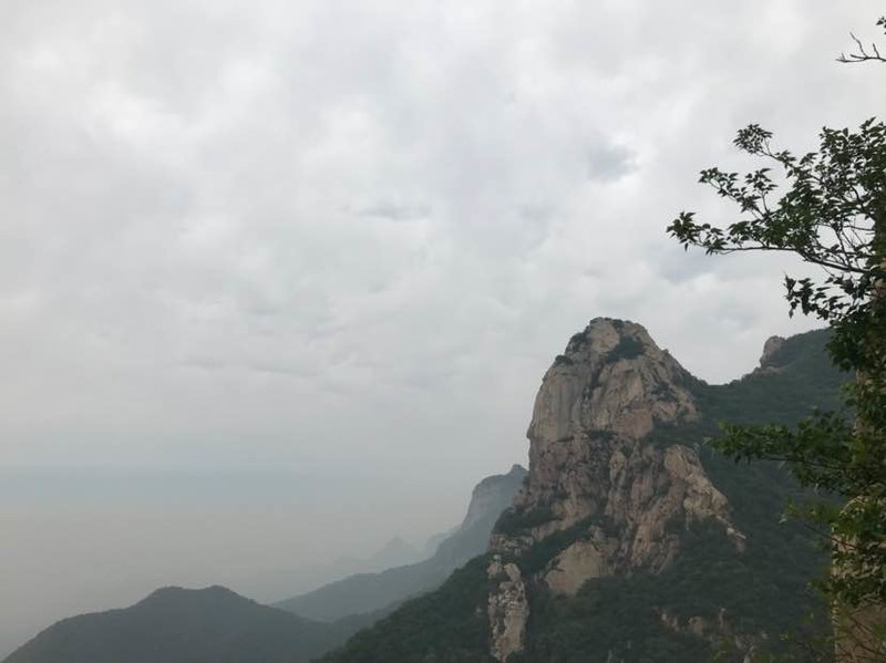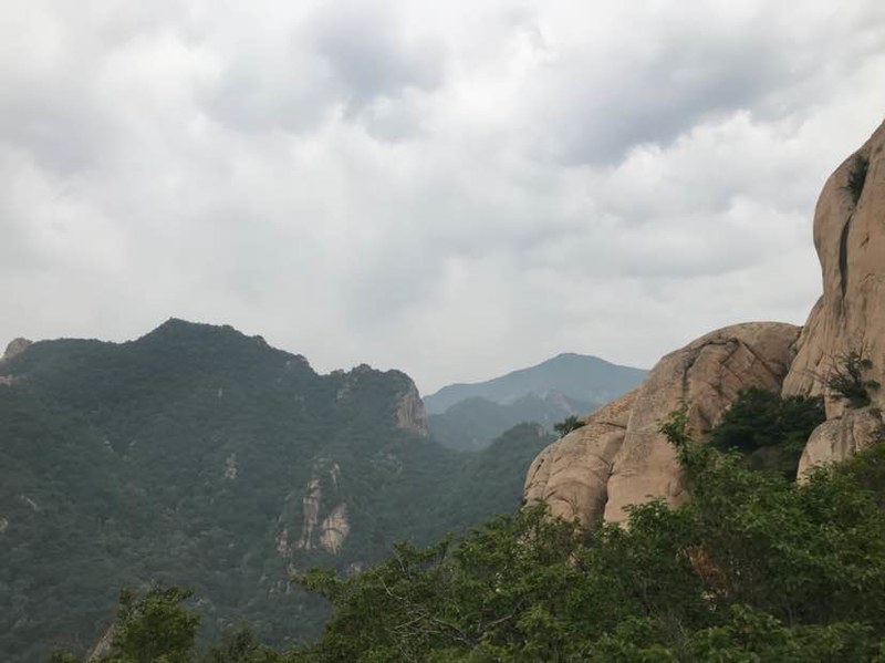 看完山洞很多队友直接往山顶爬了,我看到洞左下方有几块巨石很有特点就一个人过去踩点,费劲登上巨石,哇,顿时豁然开朗,远处峰峦叠嶂云海荡漾,好美呀!