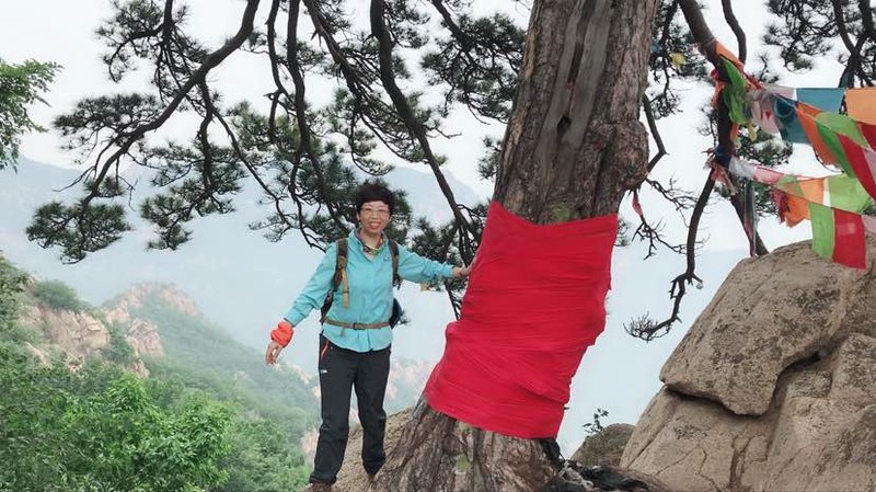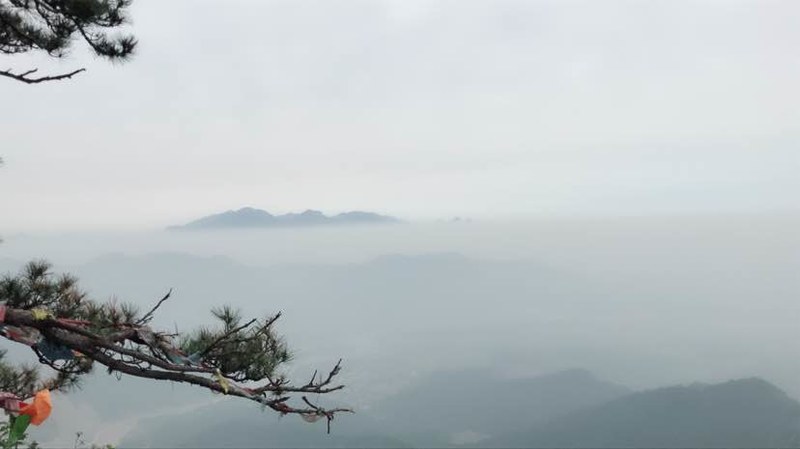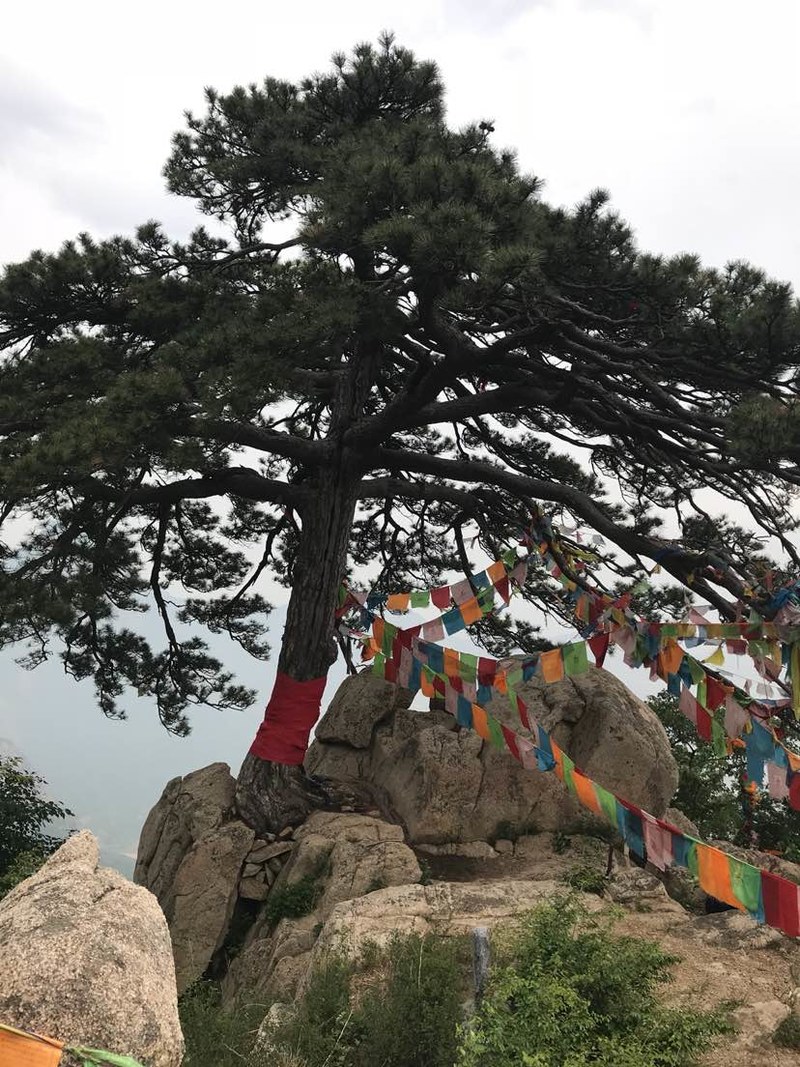 我们历尽艰辛,克服种种困难终于登上南天门,云海仿佛随我们一起来到了山顶,山色空蒙云海荡漾,人间仙境。南天门的峰顶上有一颗参天古松,枝繁叶茂,顽强生长于石缝之间,测其粗细需要两人合抱。据说有三百多年的历史了。这棵古松也常年被善男信女膜拜着,朋友提醒说绕松走三圈好运随后来,别看在悬崖边,我也毫不犹豫绕着神松走了三圈。