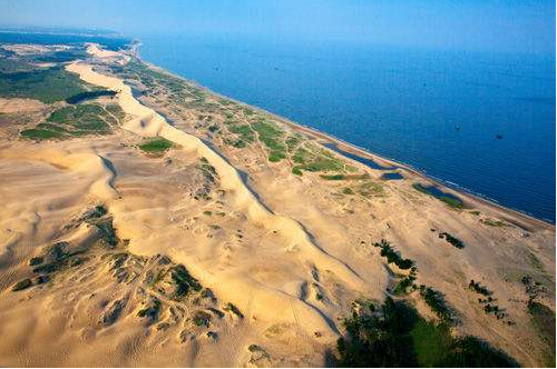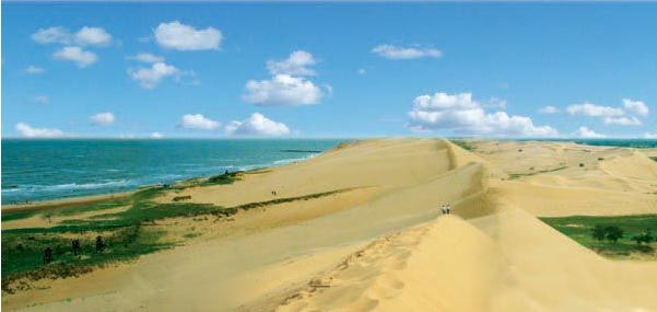 翡翠岛是我国七个国家级海洋类型自然保护区之一。位于河北省秦皇岛市昌黎县黄金海岸南部沿海。其东、北、西三面由渤海和七里海(泻湖)环绕,是一座由黄色细沙和绿色植被相间构成的半岛,岛上沙山连绵起伏,造型优美,最高处达44米,方圆约七平方公里,素有 京东大沙漠 之称。连绵起伏的沙丘与碧海、蓝天、绿林共同构成一幅罕见的海洋沙漠景观。翡翠岛上绿树葱郁,浓荫覆盖,恰似一块镶嵌在湖边的翡翠。