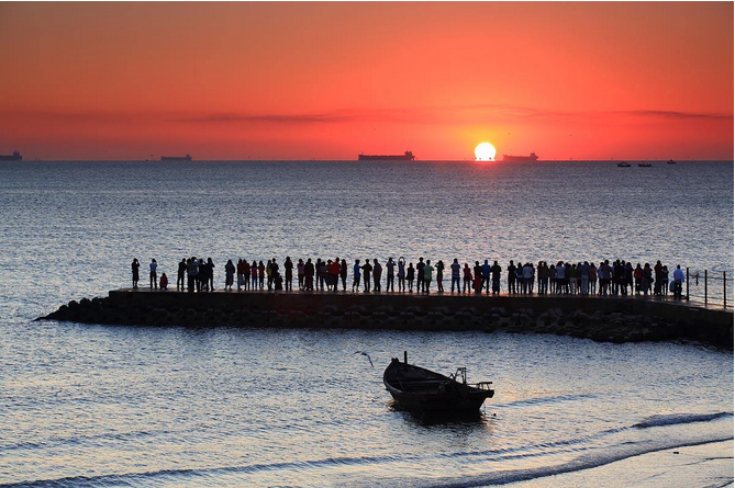 早上:沙滩,赶海、拾贝、看日出,适时集合,前往南戴河。