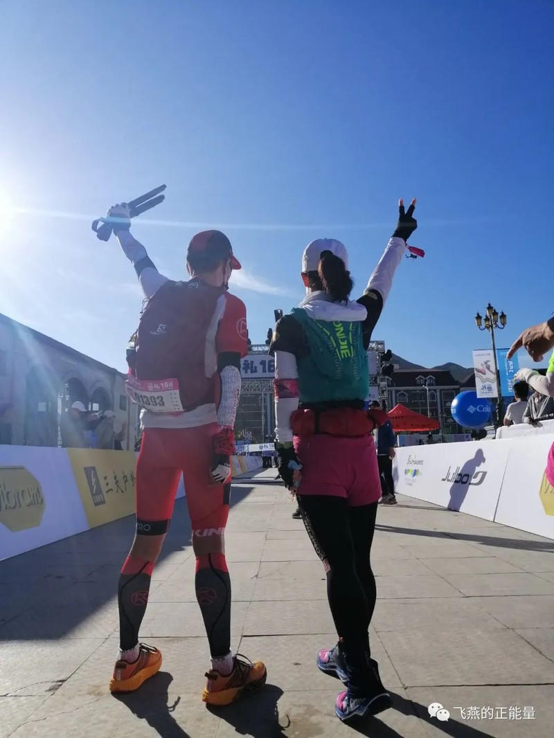 也没体力了,不想跑,一直说:走回去吧。我说:行,但是我走路腿疼,跑着反而感觉轻一点,你走,我慢点颠着。后面他看我一直慢跑也跑了起来。我俩一路又超了十多个人。大家对我还能跑都表示佩服。