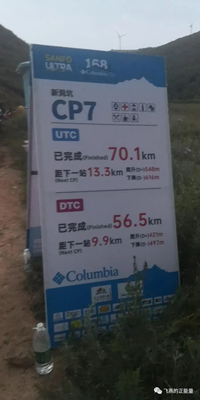 自从我首野祖山55公里后半程因为吃不下东西跑不动以来,好多人都提醒我,必须得吃东西,吃不下也得吃,不然没劲儿跑。这家伙的,我可听话了。每个CP点都一顿猛吃,前面的CP点补给还都特别好,西瓜、香蕉、橘子罐头、包子、面包、花卷、绿豆汤、鸡汤、羊肉粉……我每个CP点都吃得跑不动了才出站,出站都得走一阵才能跑起来,跑跑的还得打个饱嗝,就跟小孩吃完奶还得打个奶嗝似的。