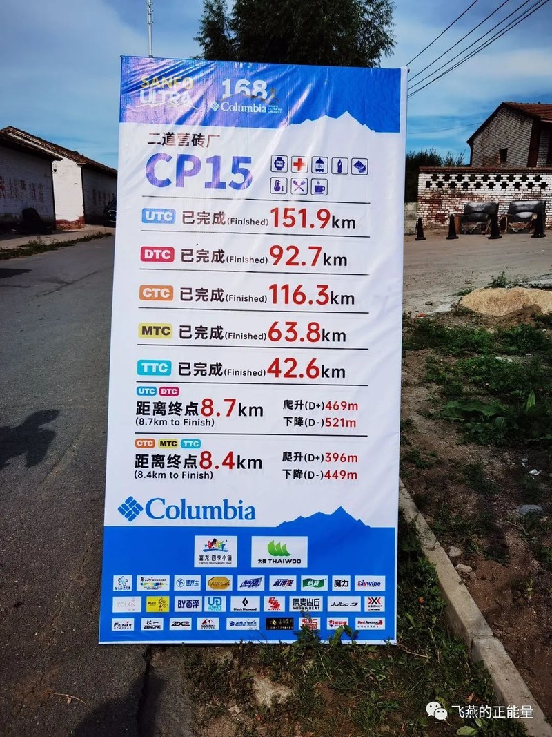等到兜兜转转终于到了CP15的我也跑不动了,也吃不下了,疼痛也加剧了。看着展牌上显示还有8.7公里,爬升469m,下降521m,我的眼泪刷的一下下来了。怎么办啊?如果一直是大马路,我慢慢跑就行了,还要上山下山,我腿这么疼还能爬得上去吗?