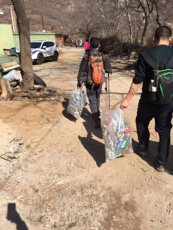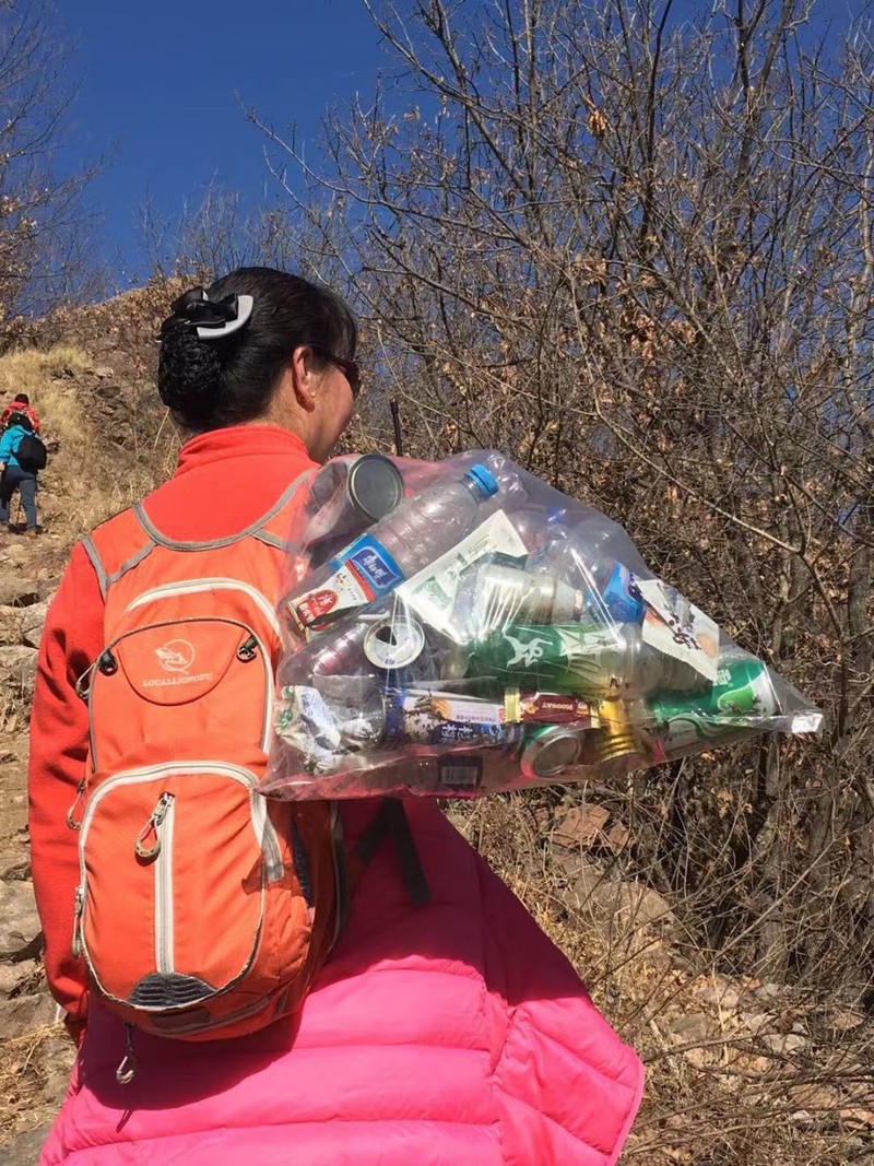 (捡拾长城上矿泉水瓶及垃圾)