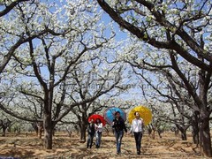 “忽如一夜春风来,千树万树梨花开”。阳春四月,两山乡正明山村“千亩果园”又到了花开时节,如雪的梨花与似火的桃花交相辉映,将静谧的村庄和周围的山野装点得分外妖娆,生机盎然。连日来,慕名前来赏花踏青的游人络绎不绝,大自然的神奇造化令每一位游人都叹为观止,陶醉其中。“真是太美了,简直就是世外桃源,只有身临其境,才知道什么是自然的美,什么是美的自然!”秦皇岛市摄影家协会副主席于文江慨叹地说。 正明山坐落在碣石山脉的半山腰,是一个有着百年历史的花果山村,素有“花果之乡”美誉,并曾有丰收果献给毛主席的辉煌历史。近年来,该村利用区位优势,大力培育以蜜梨、桃、杏、苹果等为主的特色果品经济,同时立足果品产业优势,因地制宜,着力开发打造“乡村生态游”,加快了新农村建设和农民增收的步伐。 正明山地处半山区,发展林果业具有得天独厚的资源环境优势。据村党支部书记宋继伟介绍,目前村里家家户户都从事果树种植,9