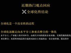 黄奇帆最新万字解读中国经济受到的冲击和应对政策文|黄奇帆中国国际经济交流中心副理事长近期谬论观点的回应美国也好,欧洲也好疫情愈演愈烈。现在还看不出拐点的趋势。眼下我们可以看到美国为代表的西方政治家、政客也包括一些专家智库,放出了一系列的怪论,这些怪论我们该清醒的判断。有的要十分重视,想好反制的措施,有的可以一笑了之,嗤之以鼻。比如说最近比较广泛议论的六种概念。1、全球化终结论第一个说全球化就此终结论。这已经不是一般意义的逆全球化的说法。这会呢,就是(说)瘟疫划出了一个时代, WTO以来的全球化运转戛然而止,以后不再是全球化了。我认为这是一种谬论。因为全球化不是哪个政治家想出来的,全球化是一个历史性的过程,整个人类从工业社会到现代化就是一个全球不断一体化的过程。工业社会最大的特点就使得世界各国的原材料资源互相配置,你有矿物我有工业,你有农产品,我有市场,然后大家互相交换,这就是工业社会起初的