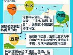 为推动京津冀健身休闲运动协同发展,国家体育总局、发展改革委、旅游局共同编制印发了《京津冀健身休闲运动协同发展规划(2016-2025年)》。《规划》指出,到2025年,京津冀健身休闲运动协同发展格局基本形成,区域合作体制机制初步建立;到2020年京津冀地区常住人口中经常参加健身休闲活动人数达到3850万,到2025年达到4150万,推动实现全国“三亿人参与冰雪运动”目标;国际知名运动休闲目的地基本建成。《规划》主要任务指出,一要推动体制机制创新。建立跨省(市)协调机构,重大项目统一布局,制定跨区域合作计划,推动重点项目落实;探索设立京津冀健身休闲运动发展基金;推动重点领域改革创新;主动配合雄安新区建设。二要完善空间布局。构建“一地”、“五区”、“五带”、“六路”基本空间布局。国际知名运动休闲目的地(“一地”),以健身休闲运动为龙头,形成区域健身休闲产业聚集区;国家运动休闲区(“五区”),分